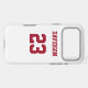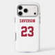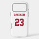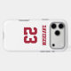 Add a name and number(s) to personalise this custom white and deep red sports jersey inspired phone case. It is an excellent gift for a sports fan or athlete. The options to change the colour and font sizes are available.