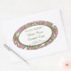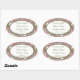 A custom oval soap or recipe sticker with faux gold script and block letters on an elegant antique floral pattern of vintage etched roses in white and golds on dusty rose background, customise it to add your own logo, change fonts and more, even save your design for later.
