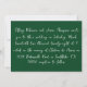 The wedding details are listed in a handwritten style, white text. The back of the invitation is a solid forest green with white text for the date.