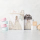 I made 3 versions of this, ordered each, and forgot to take photos; yet, the gifts were beautiful with the wrap, tote, ribbons (I ordered 2 sizes), tags, and more! I absolutely love this and have to laugh since I've been on a kick lately creating our gift bags to put presents in I've purchased for people. Not only do I spend all night creating the bags, tissue, tags, etc., but the recipients seem more amazed with the Presentation Theme I created here on Zazzle than the nice gift (and I give really nice gifts .... crystal goblets from the best company, etc.)! I am thrilled to be able to say what I've said since my first Zazzle purchase 10 years ago: POP OFF THE PAGE PERFECT! Every gift tote bag I have created and ordered is better print quality than any on the market. I'll add photos of the rest of the theme; yet, the item you see on the product page is the exact product as opposed to my camera flash!