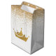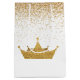 Glam custom medium sized gift bag done in white, with graphics of a gold tone crown and glitter, sprinkled around the top. Personalise the name, on the front of the bag, to read what you want. Great gift bag suitable for any age Princess.