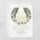 romantic white and gold flowers with elegant green leaves botanical wreath wedding invitation