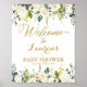 White and Gold Greenery Baby Shower welcome sign