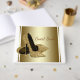 Womans white and gold high heel shoe guest book with a pair of pretty gold glitter high heel shoes on an elegant white and gold background. You can easily customise this beautiful white and gold womans birthday party guest book for your event by simply adding your text in the font style of your choice. This is a printed design with no real glitter.