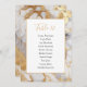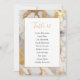 Make your wedding reception look effortlessly stylish with this white and gold marble table number seating chart. The elegant marble design adds a touch of sophistication to your decor, while the customisable options allow you to choose your own table numbers and add your guests' names for a personal touch. Printed on both sides of the card, these table numbers are easy to read from any angle and will help your guests navigate the reception with ease. Order now and add the perfect finishing touch to your wedding decor!
