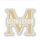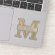 feature personalised gold monogram in classic serif font style with box of name in the middle of monogram.