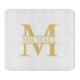 featuring personalised gold monogram in classic serif font style with box of name in the middle of monogram on white background.