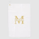 featuring personalised gold monogram in classic serif font style with box of name in the middle of monogram on white background.