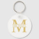 featuring personalised gold monogram in classic serif font style with box of name in the middle of monogram on white background.