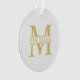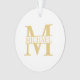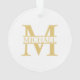 featuring personalised monogram in gold classic serif font style with box of name in the middle of monogram on white background.