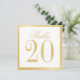 features title "Table" in gold elegant script font style and table number in gold serif font style with gold border on white background.