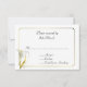 Elegant wedding response RSVP card done in white, with graphics of a gold tone thin frame and a lovely white and gold calla lily, in the bottom left corner of the card. Black text is fully customisable to suit your wedding needs. Perfect with our calla lily wedding collection.