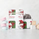 Destei's original festive design of two gift boxes together with a red and white Santa hat that has a Christmas Holly on it. The present box designs are white and green and they both have a beautiful red bow on them. There are also two personalizable text areas.