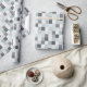 This wrapping paper features squares in different shades of white and grey in a pixelated pattern.