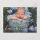 White and Grey Script Calligraphy Collage Birth Announcement Postcard