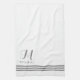 White and Grey Sophisticated Stripes and Monogram Tea Towel