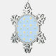 White and light blue Daisy Pattern Snowflake Pewter Christmas Ornament