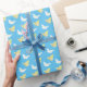 White and Light Yellow Butterflies Flying Blue Wrapping Paper