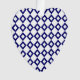 A sophisticated graphic pattern of interlocking white and navy diamond shapes. The dark blue diamonds each contain a small white diamond making white the dominant colour of the original design.