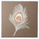 White and Peach Peacock Feather on Taupe Tan Ceramic Tile
