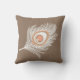 White and Peach Peacock Feather on Taupe Tan Cushion