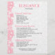 Elegant reversed pink and white damasks background with vintage floral lace in pink and white. Customizable services menu with prices.