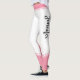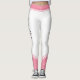 These white and pink stylish workout leggings feature an elegant white floral design on a pink background on the ankles and calves.