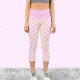 White and pink retro daisies cute floral workout capri leggings