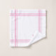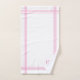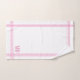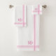 This elegant white towel set features pink stripes along with customisable initials simply placed on the corners.