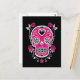 This stunning design features a Day of the Dead sugar skull on a pure black background. Four roses surround the skull with delicate vines flowing down to a five point star at the base of the pattern. A large heart sits in the middle of the forehead with fluid swirls on either side. This beautiful design is a stylish example of this Day of the Dead symbol.