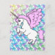 Cute White Unicorn with Pink hair and wings with a pattern of Unicorn background in gradient blue. Fully customisable. The Big Unicorn can be moved around and resized.