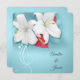 White lily bouquet with red calla lily on a soft teal gradient background.