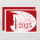 A silhouette of a young man in his cap and gown. Floral designs in the background. The back has a red background with white lettering for the graduation announcements.