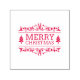 Stylish white and red Christmas design with a red Merry Christmas text in the middle and two red pine trees at the sides.