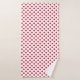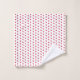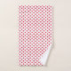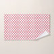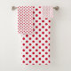 This cute bath towel set features bright red polka dots in different sizes on a background of solid white.