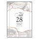 White and rose gold faux glitter agate stone wedding table number cards customisable to your event specifics.
