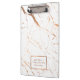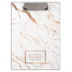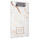 Coordinates with the White and Rose Gold Marble Designer Business Card Template by 1201AM. Your name or business name is elegantly displayed over a white and rose gold marble background for a very chic aesthetic on this personalised clipboard. Art and design © 1201AM Design Studio