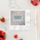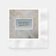 A white ruffle look background featuring a silver faux glitter rectangle with a white border accenting names and date.. This makes for a stunning wedding or event table napkin. Ready for you to personalize.