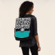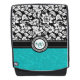 Monogrammed white and turquoise floral damask pattern. White damask on black background