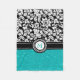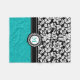 Elegant white floral damask over a black background and down the turquoise damask. Optional monogram