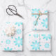 White and turquoise delicate daisy, dots pattern wrapping paper sheet