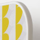 This modern pickleball paddle design features a white and yellow half moon pattern background, with your initial in black handwritten script text for a look that is simple and stylish, yet professional.