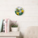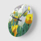 A pretty clock for any room of the house. It features a beautiful photograph of white and yellow tulip flowers.