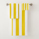 Alternating white and yellow vertical stripes are tiled across this towel set to add style to your bath decor! A uniquely stylish way to start your day!