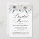 Elegant, floral bridal shower invitation featuring a bouquet of white watercolor anemones, ivory roses, and dark sage green leaves. Personalise the invite by adding your bridal shower details accented by a modern calligraphy script. The white anemone bridal shower invite reverses to display a dark sage green watercolor background. Designed to coordinate with our White Anemones and Roses wedding collection.