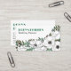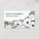 White floral business card with greenery and eucalyptus among white anemones with your name in a jade green art deco font. Pretty flower business card with a retro font with an illustration of white anemones in a vintage inspired style against a white background with greenery in shades of green and rust red. Personalise with your QR code, contact info, and in a jade green retro font, your name.