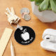 White apple with leaf icon. Custom background colour. Custom text on both sides.