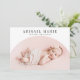 Simple birth announcement card featuring a white arch frame with your newborn's picture.