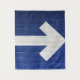 White arrow painted on brick wall tapestry