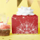 Trendy white assorted abstract Christmas snowflakes pattern over red background